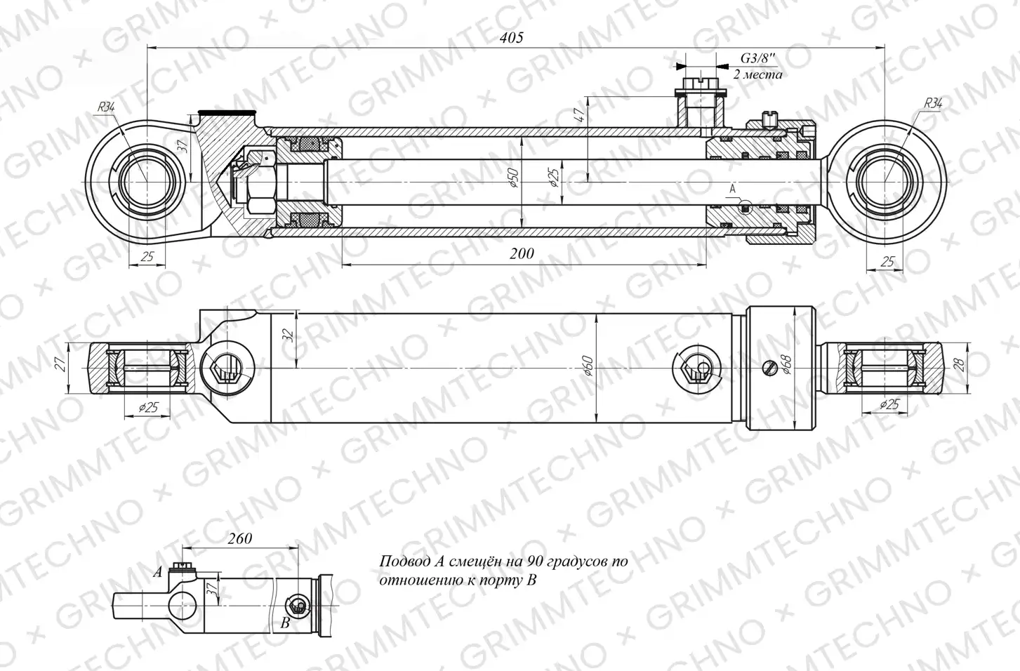 Максимальная нагрузка: толкающая 3 тонны, тянущая 2 тонны. Диаметр гильзы: 50 мм Диаметр штока: 25 мм Ход гидроцилиндра: 200 мм Установочный размер: 405 мм Максимальное рабочее давление: 200 бар Вес: 6,1 кг